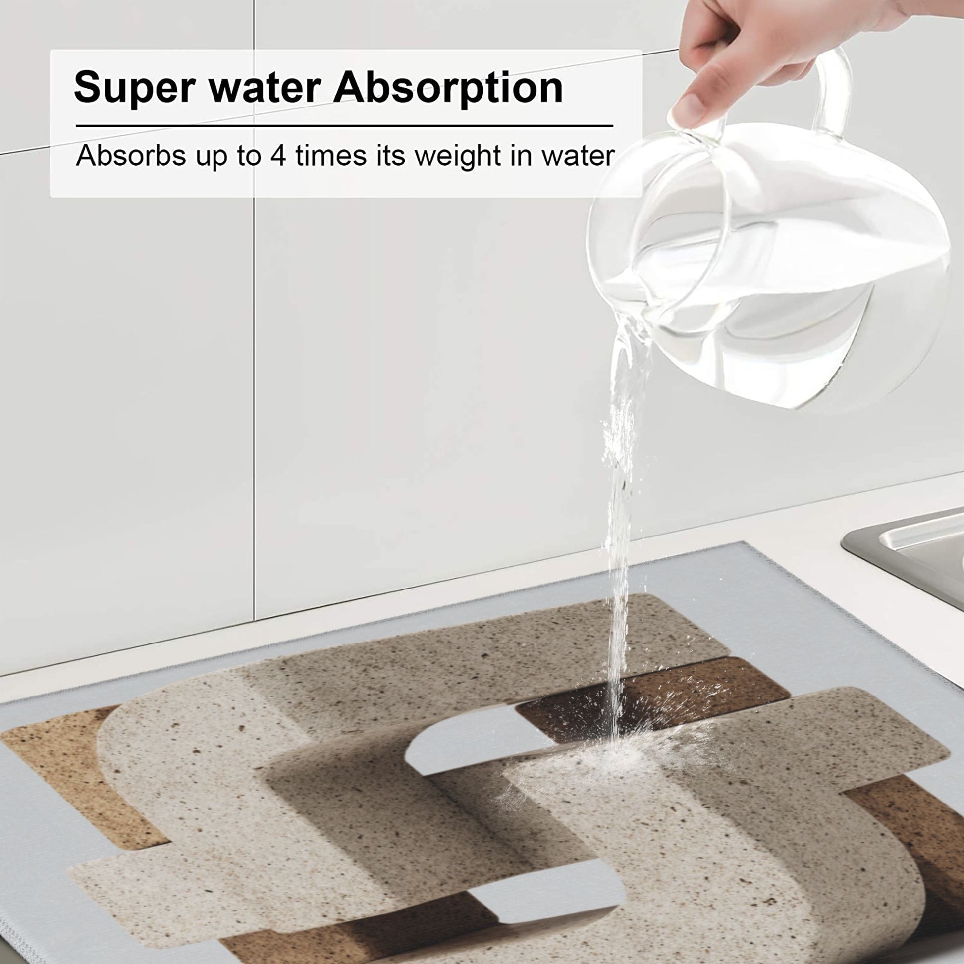 Beige Geometric Block Kitchen Drying Mat – Modern Minimalist Art | Water Absorbent & Anti-Slip | 18×16in