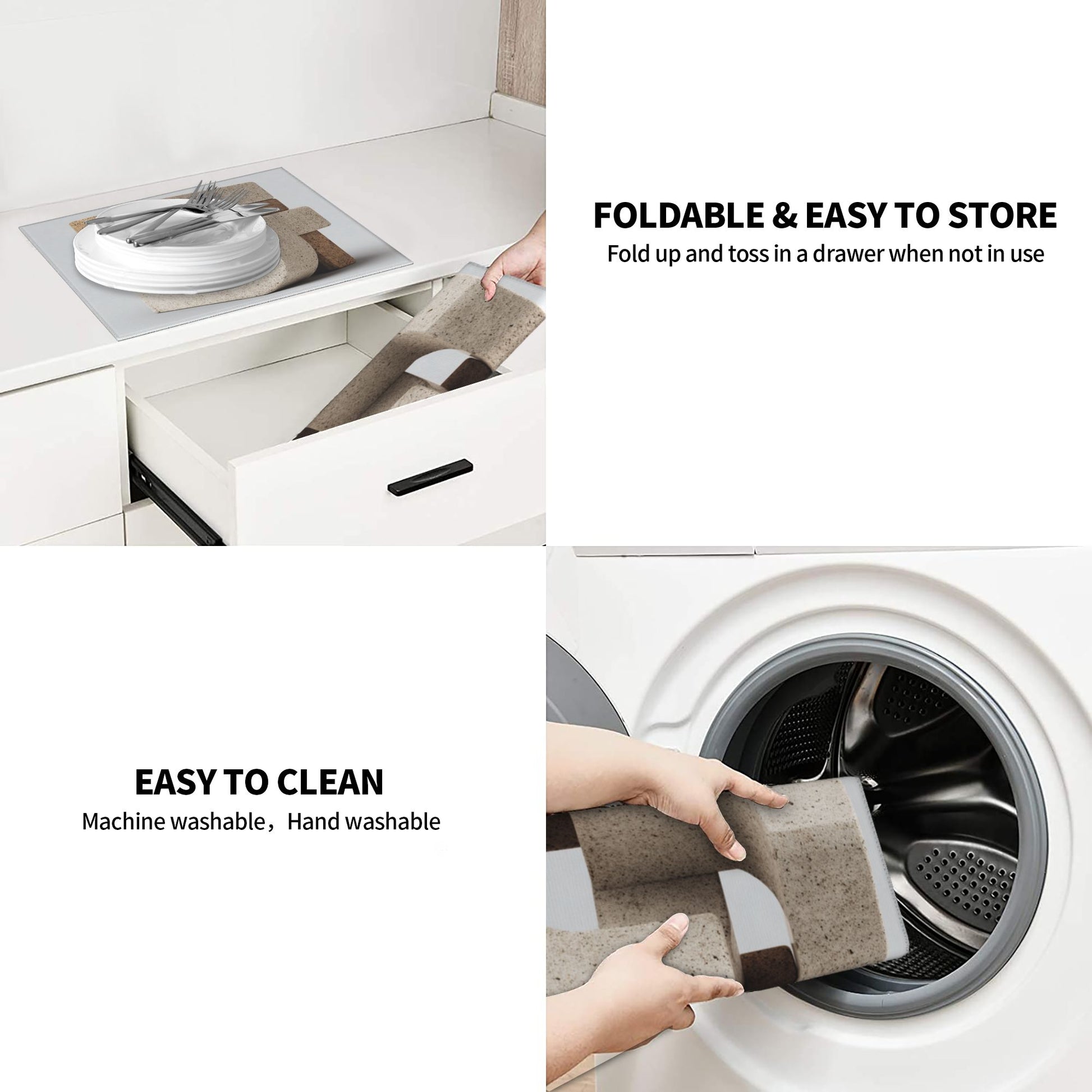 Measuring 18×16 inches (46×41cm), this mat is ideal for a variety of uses—from drying dishes and supporting appliances, to serving as a stylish tabletop liner.