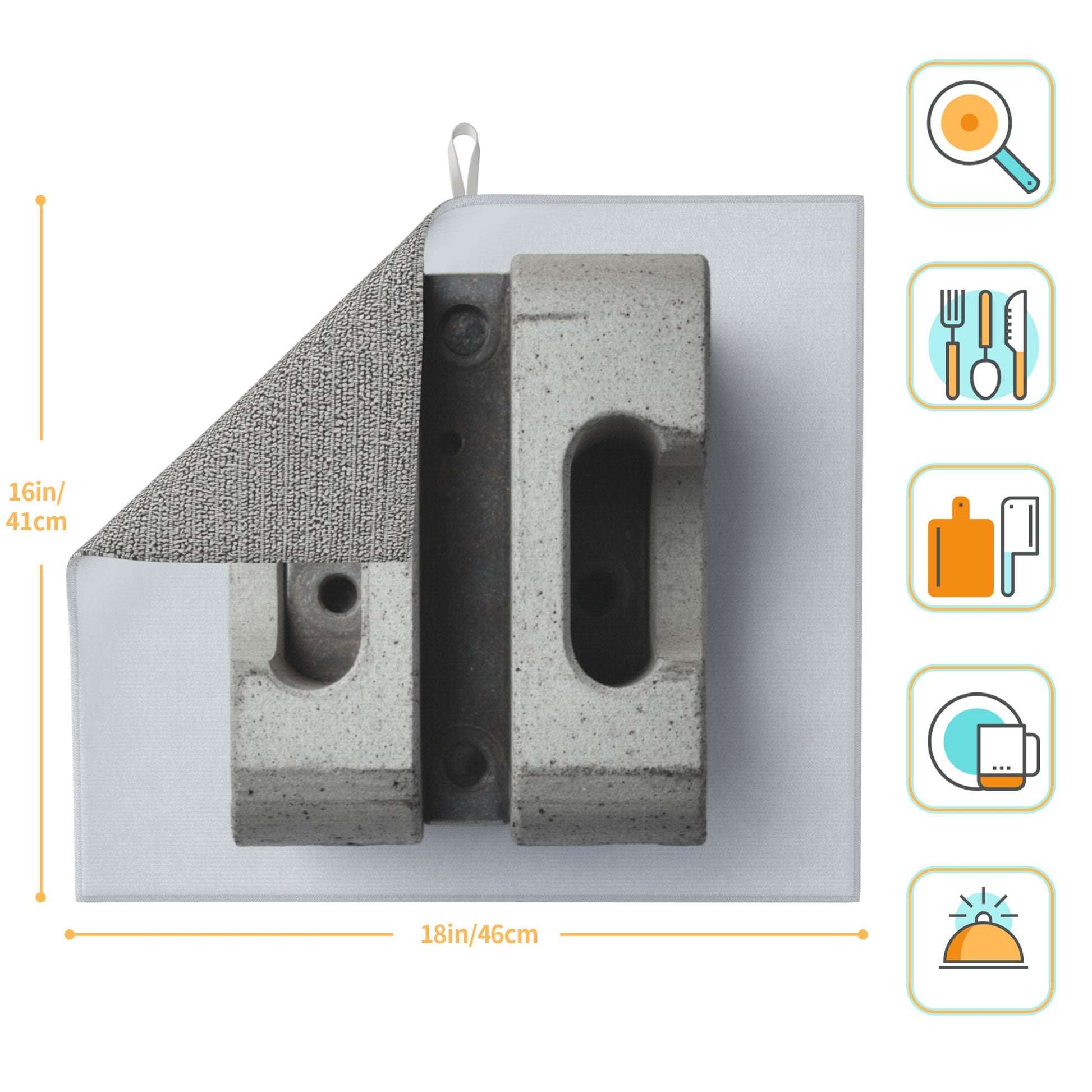 Elevate your kitchen counter space with bold design and high functionality. This Concrete-Inspired Drying Mat combines architectural art with practical drying power. Sized at 18×16 inches (46×41cm), it's the perfect size for everyday kitchen needs—whether drying dishes, protecting your counter from hot appliances, or keeping coffee stations neat and dry.