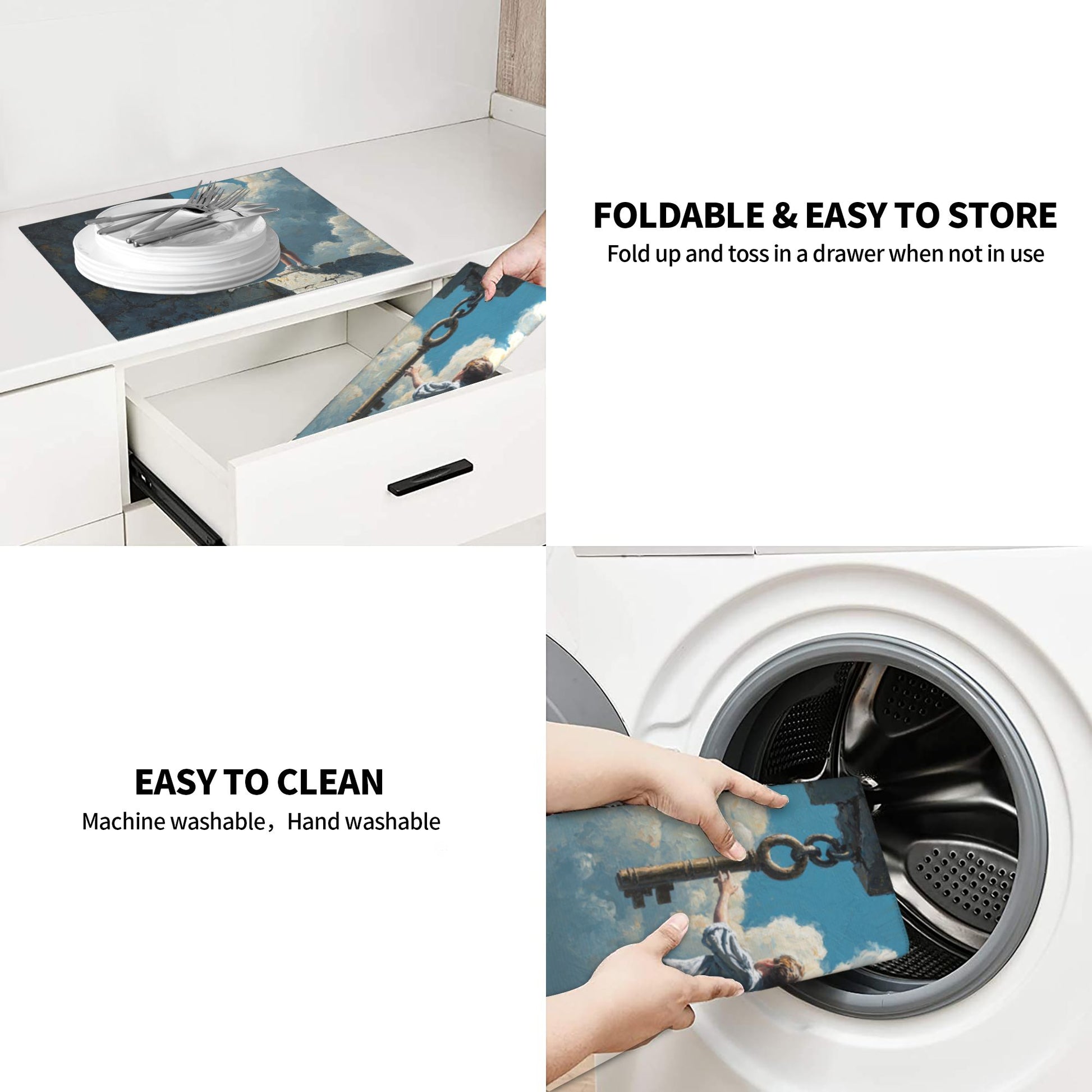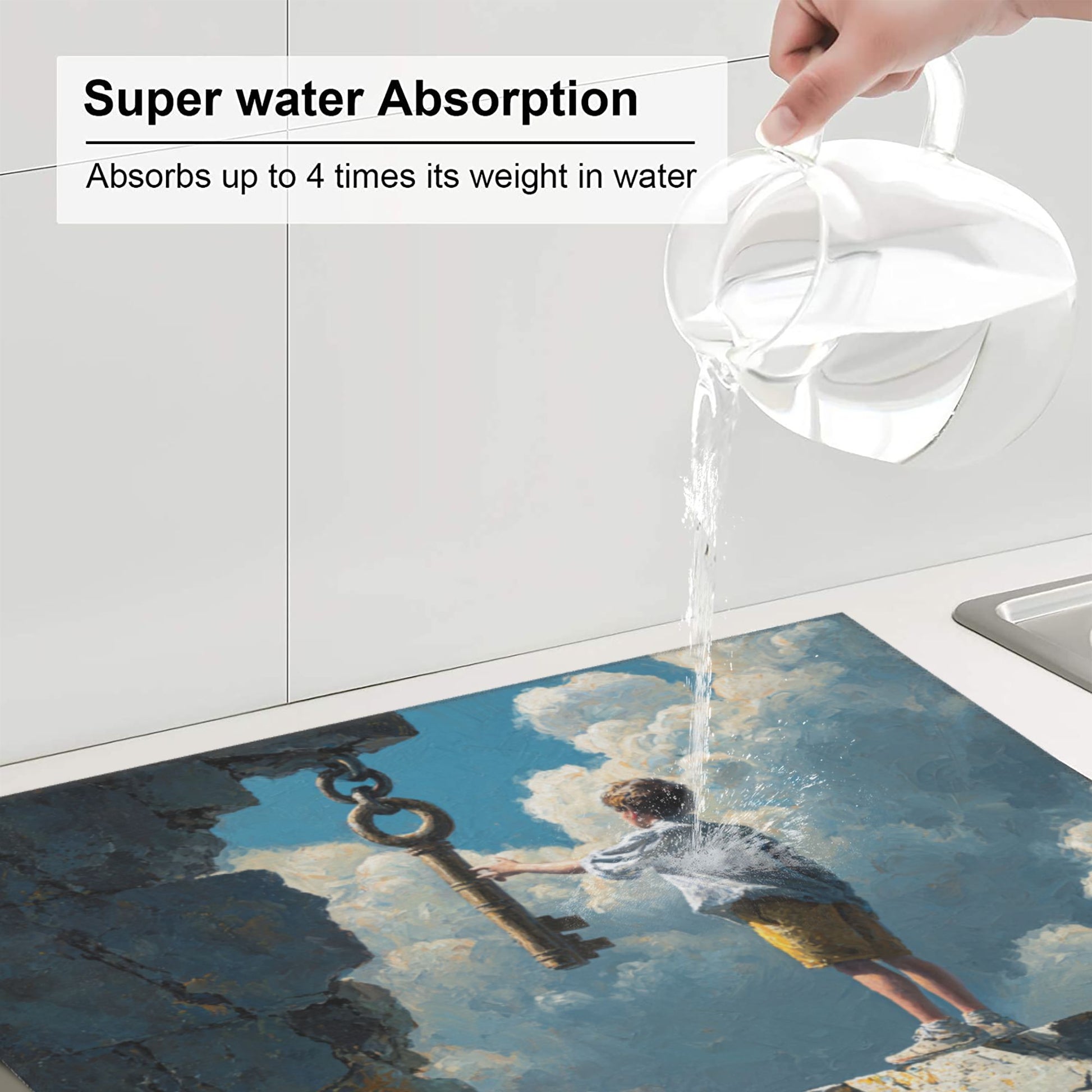 Dream Gate Kitchen Drying Mat – Cloud Key & Child Fantasy Art 18×16in