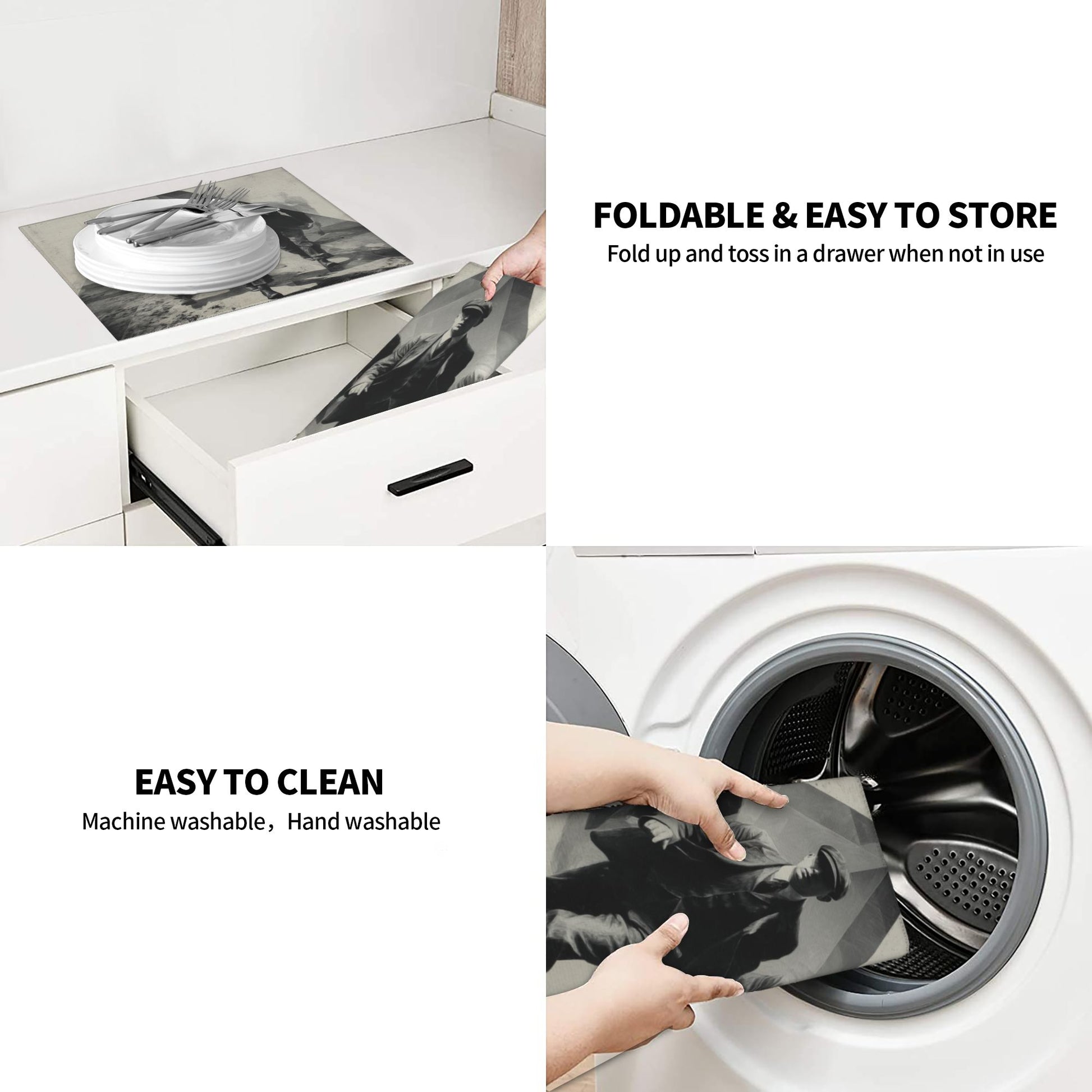 Vintage Gentlemen Walk Kitchen Drying Mat – Retro Black & White Suited Men Art 18×16in